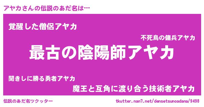 | ファンタジー風あだ名 | 『エターナルアヤカー』『ゼアヤトゥ』 |