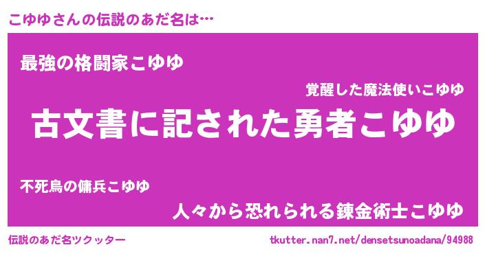 | ファンタジー風あだ名 | 『コユディッシュ』『ユリコユヴァット』 |