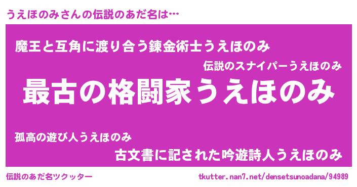 | ヒーロー風カッコイイあだ名 | 『最強戦士ウエホノミ』『仮面ウエダー』 |
