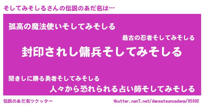 | 男性向けラノベタイトル風あだ名 | 『ソシテミソシルアートオンライン』 |