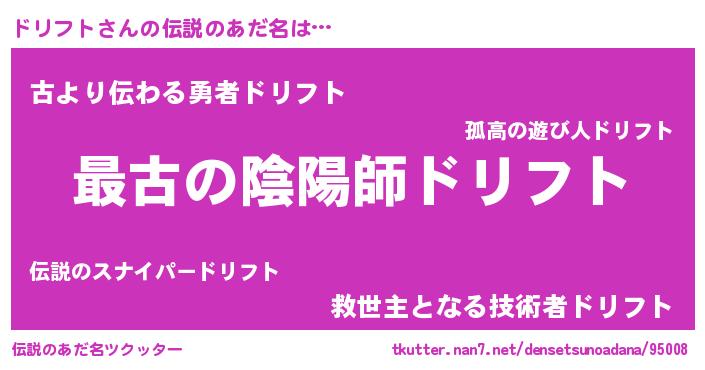 | ヒーロー風カッコイイあだ名 | 『ウルトラドリフトマン』『仮面ドリダー』 |