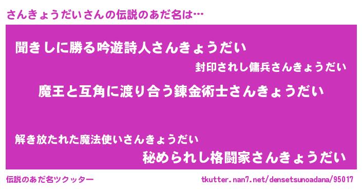 | ヒーロー風カッコイイあだ名 | 『最強戦士サンキョウダイ』 |