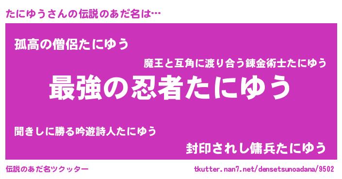 | 女子向けラノベタイトル風あだ名 | 『たにゆうの婚約者』『闇のたにゆう』 |
