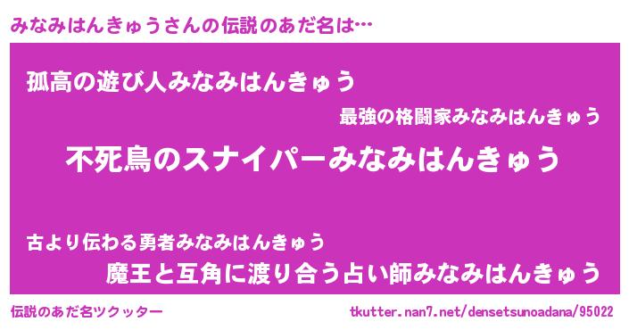 | ヒーロー風カッコイイあだ名 | 『スーパーミナミハンキュウ』 |