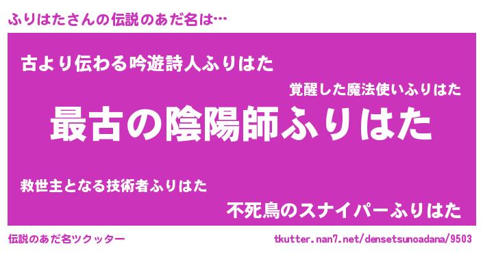 | 意味不明あだ名 | 『住所不定無職ふりはた(93歳)』 |