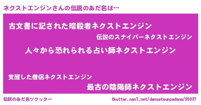 | 意味不明あだ名 | 『自称ネクストエンジン』 |