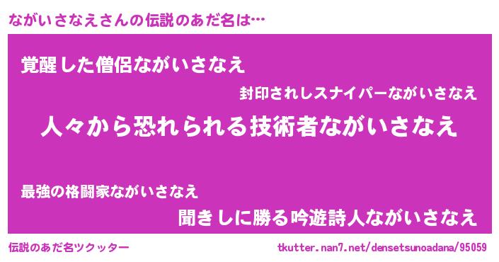 | 女子向けラノベタイトル風あだ名 | 『ながいさなえ夫妻のなれそめ』 |