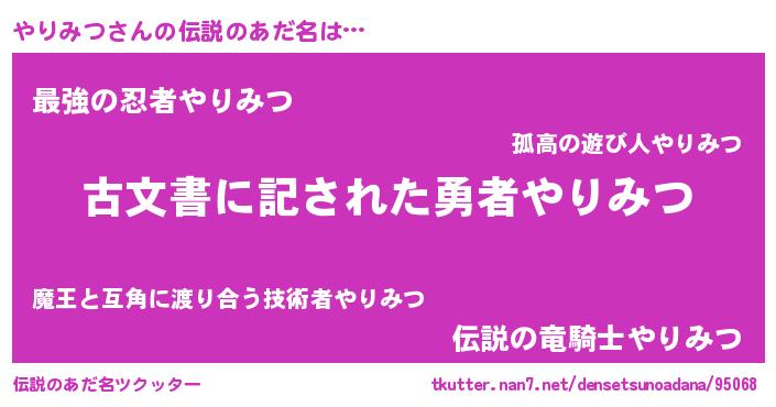 | 男性向けラノベタイトル風あだ名 | 『誰もが恐れるあのやりみつが、ぼくの専属メイドになるようです。』 |