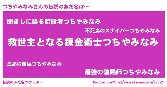 | 男性向けラノベタイトル風あだ名 | 『ノーゲーム・ノーツチヤミナミ』 |