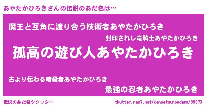 | 女子向けラノベタイトル風あだ名 | 『あやたかひろきは平凡を望む』 |