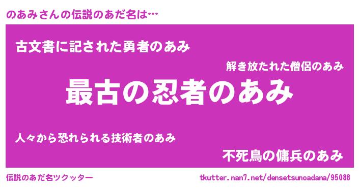 | ヒーロー風カッコイイあだ名 | 『ウルトラのあみマン』『ネオノアミ』 |