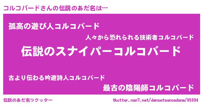| 胡散臭い通販商品みたいなあだ名 | 『必ず成功する霊験あらたかなお札…その名も「コルコバード」』 |