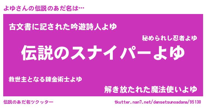 | 男性向けラノベタイトル風あだ名 | 『ヨユスレイヤー』 |