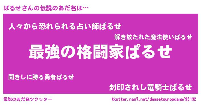 | ヒーロー風カッコイイあだ名 | 『仮面パルダー』『ウルトラぱるせマン』 |