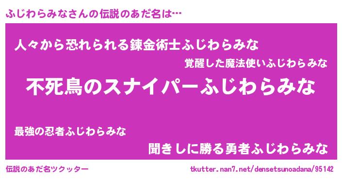 | 男性向けラノベタイトル風あだ名 | 『魔法科高校のふじわらみな』 |