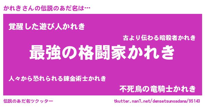 | 意味不明あだ名 | 『かれきフォーエバー』『自称かれき』 |