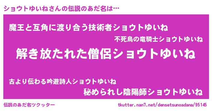 | 欧米人風あだ名 | 『ショウトゆいね・ステッグマイヤー』 |