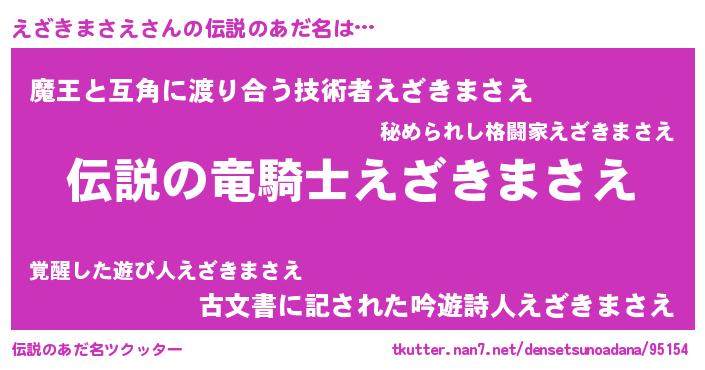 | ヒーロー風カッコイイあだ名 | 『スーパーエザキマサエ』『仮面エザダー』 |