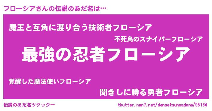 | 欧米人風あだ名 | 『フローシア・ステッグマイヤー』 |