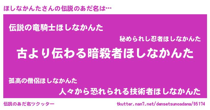 | 胡散臭い通販商品みたいなあだ名 | 『来世でも幸せになれる健康食品…その名も「ほしなかんた」』 |