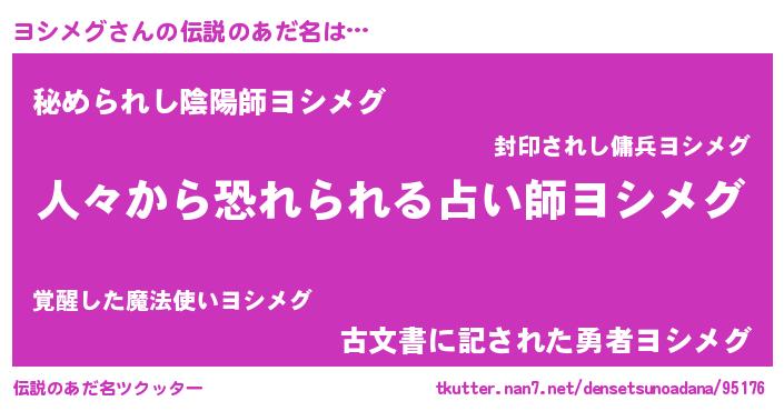 | ヒーロー風カッコイイあだ名 | 『正義の使者ヨシメグ』『仮面ヨシダー』 |