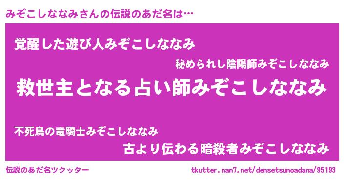 | ヒーロー風カッコイイあだ名 | 『慈愛の使者みぞこしななみ』 |