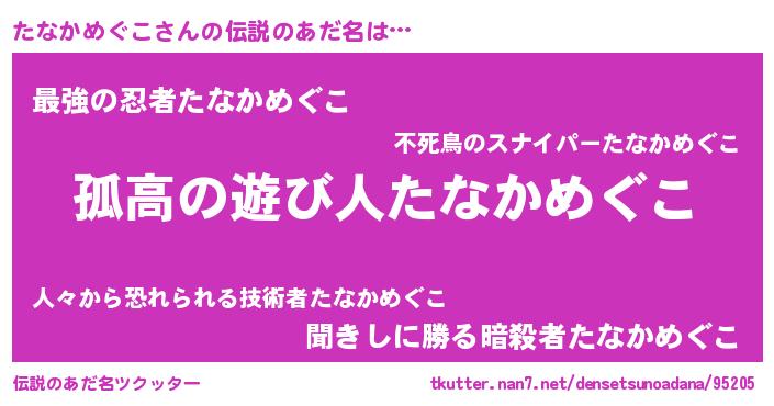 | 女子向けラノベタイトル風あだ名 | 『たなかめぐこが死なない童話 林檎のたなかめぐこの診療簿』 |