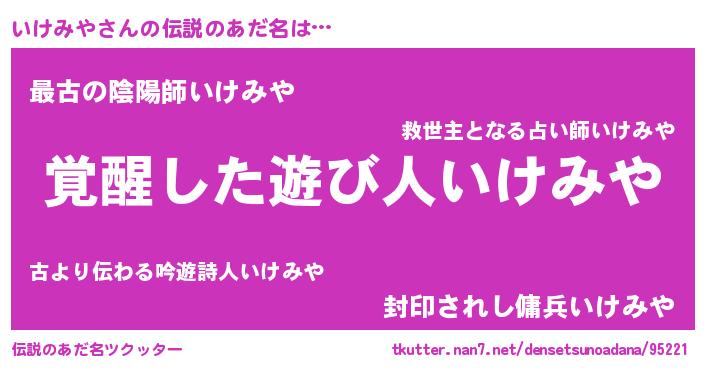 | 意味不明あだ名 | 『住所不定無職いけみや(95歳)』 |