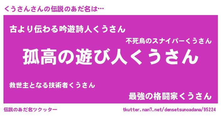 | 意味不明あだ名 | 『めかぶ科くうさん属』『自称くうさん』 |