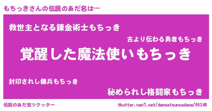 | ヒーロー風カッコイイあだ名 | 『天弓騎士モチ』『愛の使者もちっき』 |