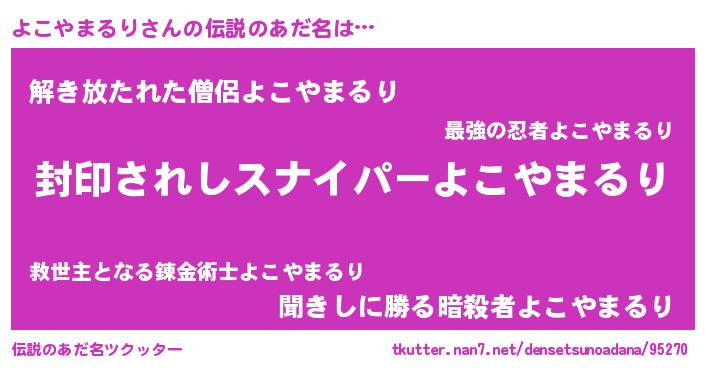 | 胡散臭い通販商品みたいなあだ名 | 『億万長者になれる霊験あらたかなお札…その名も「よこやまるり」』 |