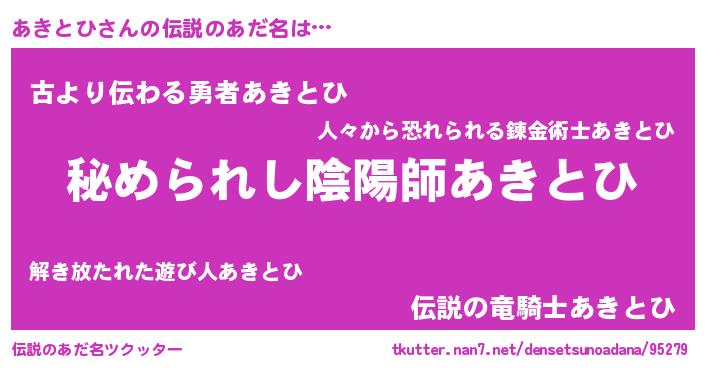 | ヒーロー風カッコイイあだ名 | 『ウルトラあきとひマン』『ネオアキトヒ』 |