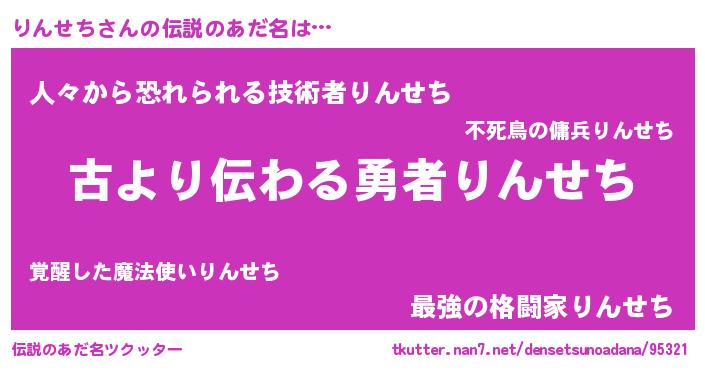 | 意味不明あだ名 | 『永久保存りんせち』『自称りんせち』 |