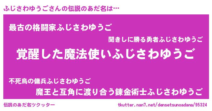 | 男性向けラノベタイトル風あだ名 | 『ふじさわゆうご~年齢イコール彼女いない歴の魔法使い~』 |