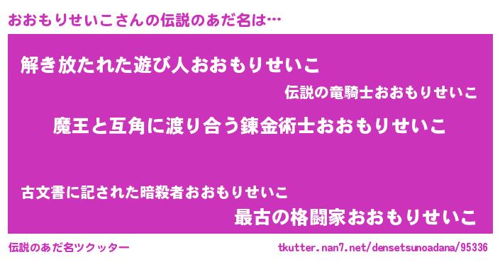 | 意味不明あだ名 | 『自称おおもりせいこ』 |