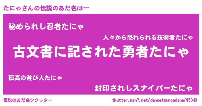 | ヒーロー風カッコイイあだ名 | 『ネオタニャ』『ウルトラたにゃマン』 |