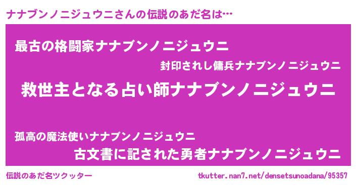 | 男性向けラノベタイトル風あだ名 | 『この素晴らしい世界にナナブンノニジュウニを!』 |
