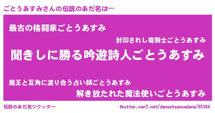 | 意味不明あだ名 | 『永久保存ごとうあすみ』 |