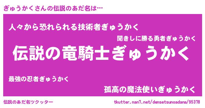 | 胡散臭い通販商品みたいなあだ名 | 『必ず成功するブレスレット…その名も「ぎゅうかく」』 |
