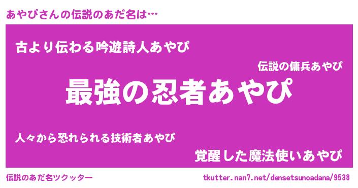 | ファンタジー風あだ名 | 『エターナルアヤピー』『ヴァルアヤーナ』 |