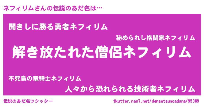 | ヘコむあだ名 | 『ネフ太郎』『ネフィリム(笑)』 |