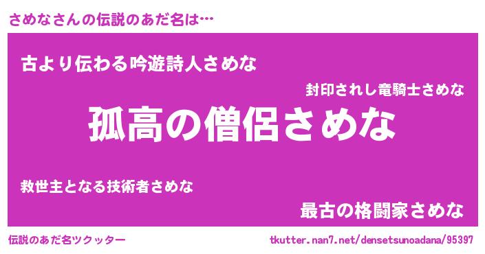 | 意味不明あだ名 | 『とにかく怪しいさめな』『自称さめな』 |