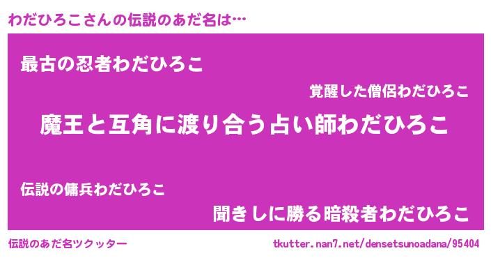 | 男性向けラノベタイトル風あだ名 | 『おまえをオタクにしてやるから、俺をわだひろこにしてくれ! 』 |