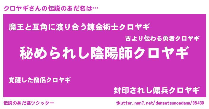 | 意味不明あだ名 | 『クロヤギフォーエバー』『自称クロヤギ』 |