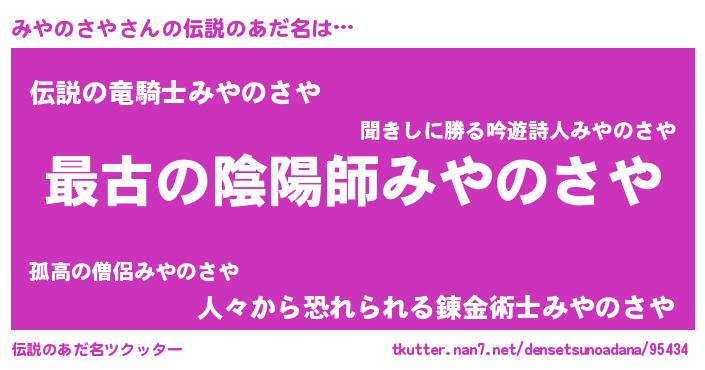 | ファンタジー風あだ名 | 『エターナルミヤノサヤー』『ミヤフェル』 |