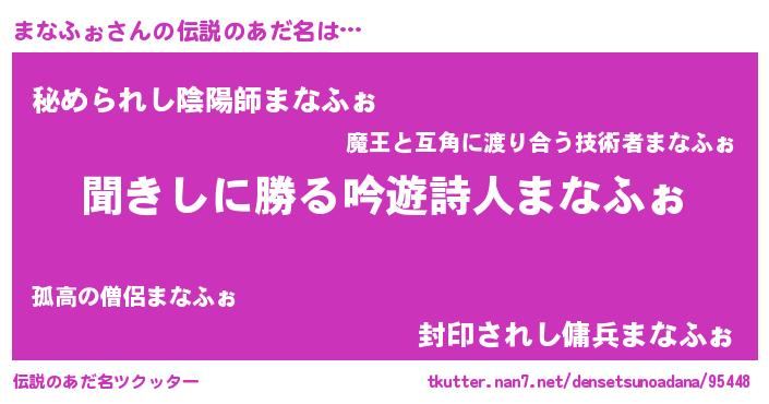| 男性向けラノベタイトル風あだ名 | 『まなふぉという概念が存在しない退屈な世界 』 |