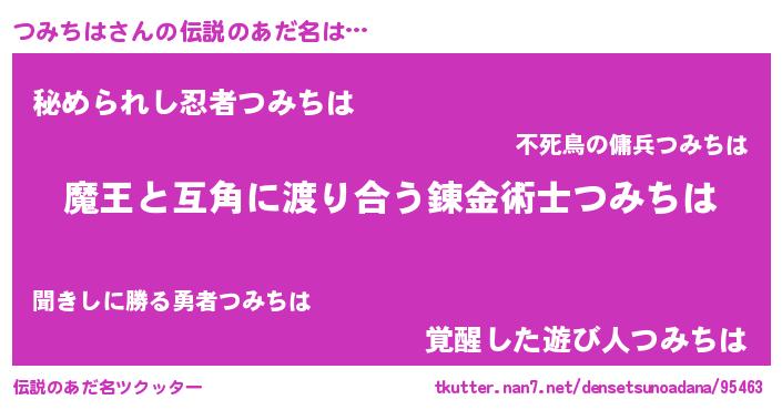 | ヒーロー風カッコイイあだ名 | 『愛の使者つみちは』『炎刃騎士ツミ』 |