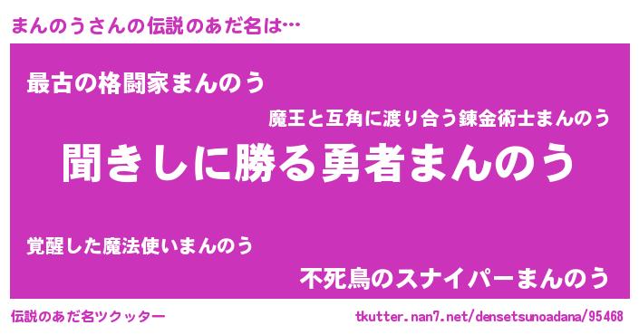 | ヒーロー風カッコイイあだ名 | 『ネオマンノウ』『ウルトラまんのうマン』 |