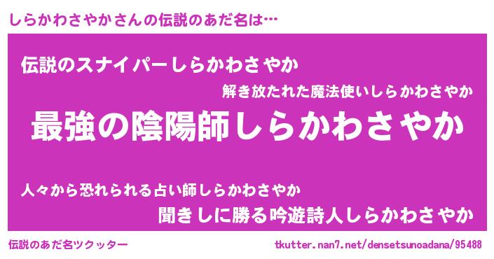 | 意味不明あだ名 | 『ヨモギ科しらかわさやか属』 |