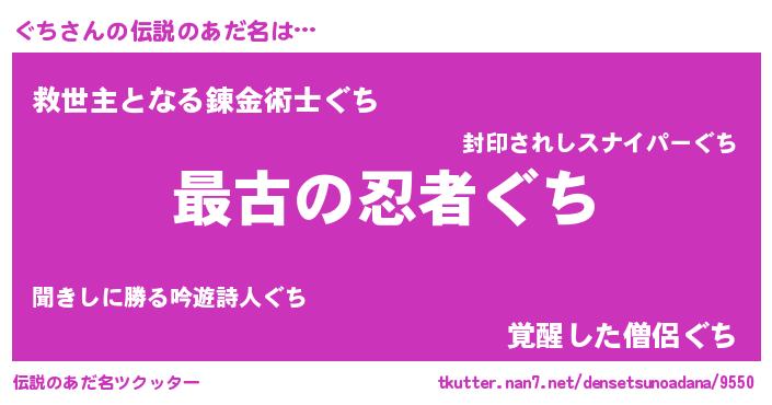 | ファンタジー風あだ名 | 『エターナルグチー』『ゼグチトゥ』 |